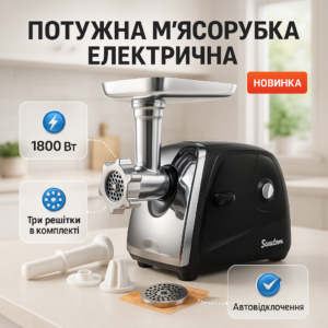 М'ясорубка Suntera SMG-5421B 1800 Вт, м'ясорубка електрична для м'яса, м'ясорубка для домашньої ковбасиМясорубка Suntera SMG-5421B 1800 Вт, мясорубка электрическая для мяса, мясорубка для домашней колбасы