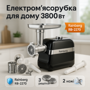 М'ясорубка Rainberg RB-2270 з реверсом та насадками для шатківниці та ковбас 3800Вт BlackМясорубка Rainberg RB-2270 с реверсом и насадками для шинковки и колбас 3800Вт Black