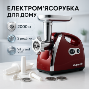 Електром'ясорубка ViLgrand V203-BRMG 2000Вт RedЭлектромясорубка ViLgrand V203-BRMG 2000Вт Red
