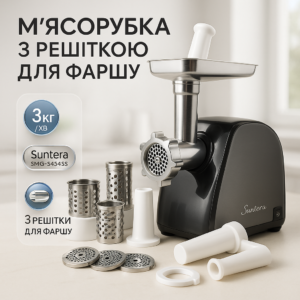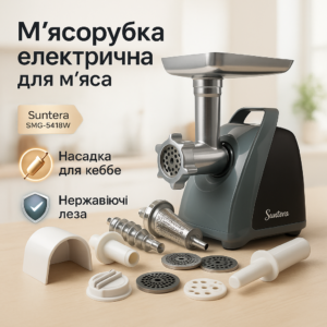 М'ясорубка Suntera SMG-5425B, електрична м'ясорубка з насадками, електром'ясорубка для шатківниціМясорубка Suntera SMG-5425B, электрическая мясорубка с насадками, электромясорубка для шинковки
