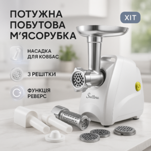 М'ясорубка Suntera SMG-5425W, м'ясорубка-соковитискач, електрична м'ясорубка з насадками для домуМясорубка Suntera SMG-5425W, мясорубка-соковыжималка, электрическая мясорубка с насадками для дома