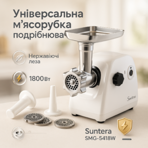 М'ясорубка Suntera SMG-5418W, електром'ясорубка для дому, м'ясорубка з металевим редукторомМясорубка Suntera SMG-5418W, электромясорубка для дома, мясорубка с металлическим редуктором