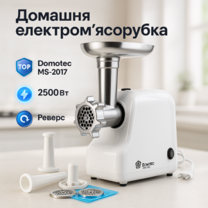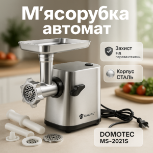 М'ясорубка електрична DOMOTEC MS-2025 3 в 1 4800 Вт із соковижималкою, терками, шатківниками та реверсомМясорубка электрическая DOMOTEC MS-2025 3 в 1 4800 Вт с соковыжималкой, терками, шинковщиками и реверсом