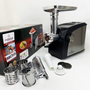 Електрична м'ясорубка Rainberg RB-673 із соковижималкою та шатківницею 9 насадок 3000W з реверсомЭлектрическая мясорубка Rainberg RB-673 с соковыжималкой и шинковкой 9 насадок 3000W с реверсом
