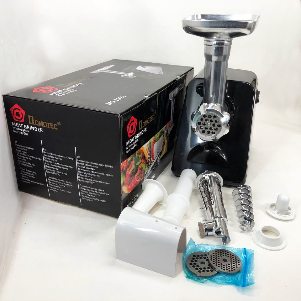Електрична м'ясорубка соковитискач DOMOTEC MS-2023 2800 Вт, томати з насадками, м'ясорубка для м'ясаЭлектрическая мясорубка соковыжималка DOMOTEC MS-2023 2800 Вт, томаты с насадками, мясорубка для мяса