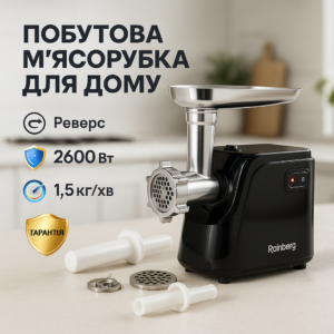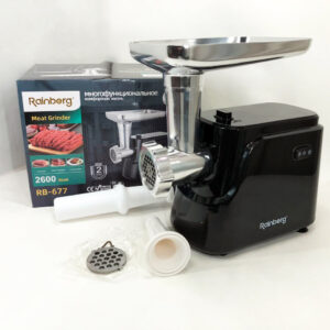 Електрична м'ясорубка Rainberg RB-677 2600 Вт з насадкою для ковбас, м'ясорубка з металевим редукторомЭлектрическая мясорубка Rainberg RB-677 2600 Вт с насадкой для колбас, мясорубка с металлическим редуктором
