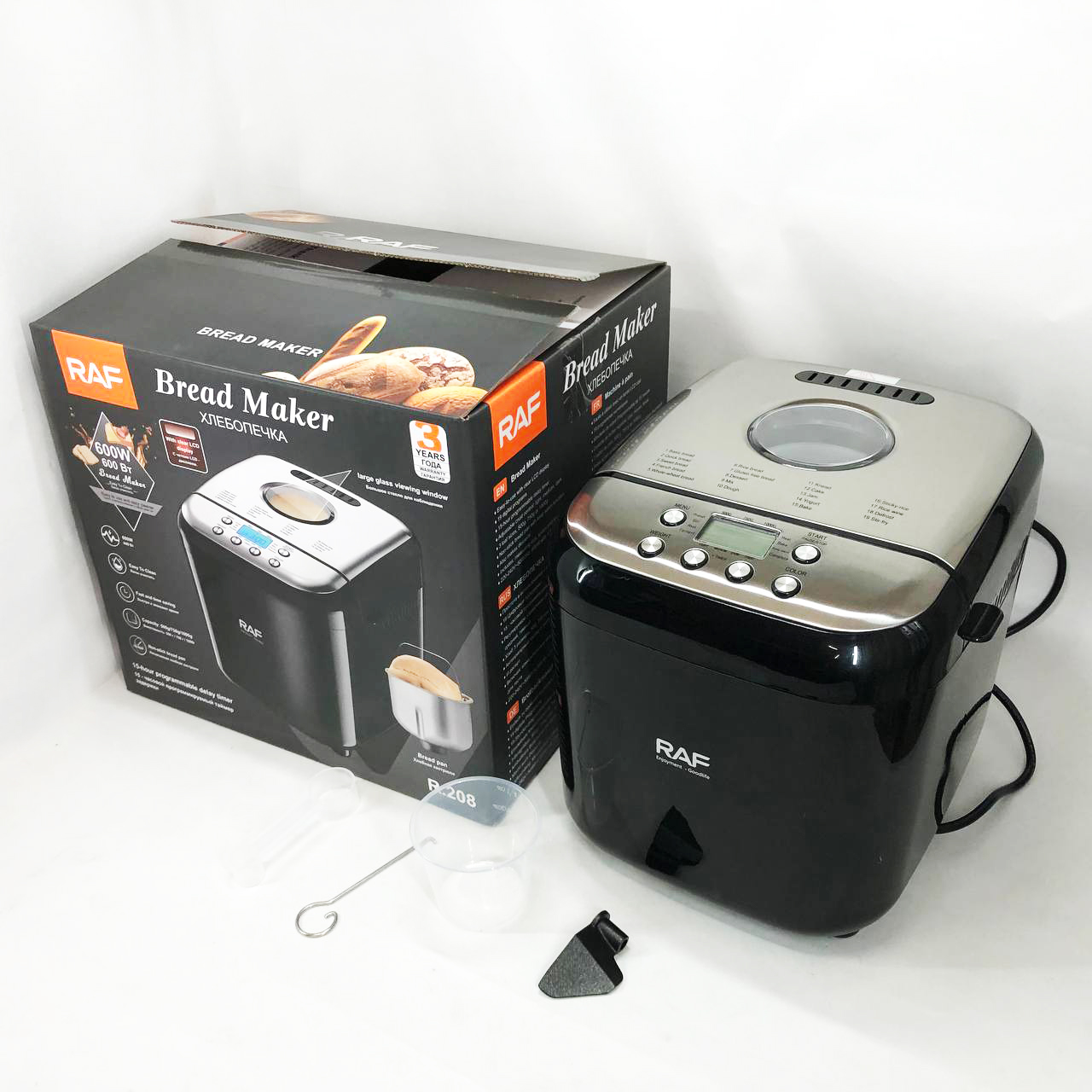 Хлібопічка RAF R.208, 600 Вт, до 1000 г, з функцією безглютенової випічкиХлебопечка RAF R.208, 600 Вт, до 1000 г, с функцией безглютеновой выпечки