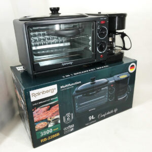 Електрична піч для сніданку 3в1 Rainberg RB-2286B 3800 Вт (піч, кавоварка, поверхня для смаження)Электрическая печь для завтрака 3в1 Rainberg RB-2286B 3800 Вт (печь, кофеварка, жарочная поверхность)