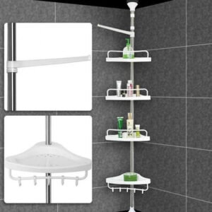 Кутова полиця у ванну Multi Corner Shelf AD 9866 з металу та пластику 2.6 метра, 4 полиці, регульованаУгловая полка в ванную Multi Corner Shelf AD 9866 из металла и пластика 2.6 метра, 4 полки, регулируемая