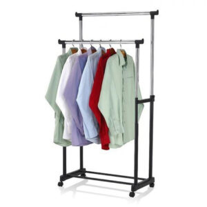 Подвійна регульована вішалка стійка для одягу телескопічна підлогова Double-PoleДвойная регулируемая вешалка стойка для одежды напольная телескопическая Double-Pole