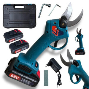 Секатор акумуляторний 68V - це високоякісний інструмент, призначений для полегшення садових робіт та стрижки рослин. Цей садовий секатор оснащений потужним і довговічним літій-іонним акумулятором, що забезпечує тривалу роботу без необхідності постійної зарядки. Акумуляторний секатор має напругу 68 В, що дозволяє їм легко справлятися з різними садовими завданнями, включаючи стрижку чагарників, дерев, живоплотів та газонів. Висока напруга забезпечує потужний та стабільний потік енергії, що дозволяє швидко та ефективно обрізати рослини. Конструкція леза зі сталі SK5 має високу жорсткість, корозійну стійкість і зносостійкість для довговічності. Підтримка ріжучих гілок та гілок діаметром 0-25 мм дозволяє ефективно працювати з різними рослинами. Особливості: Прекрасна продуктивність: Вбудований мідний двигун високої якості забезпечує стабільну роботу та високу продуктивність. Електричний секатор значно заощаджує робочу силу та час. Ефективне обрізання: Спеціальне сталеве лезо SK5 дуже гостре та міцне. Воно здатне різати гілки з максимальним діаметром до 25 мм, що значно підвищує ефективність обрізки порівняно з традиційними ножицями. Портативний та економічний: Простий у використанні, компактний та легкий, навіть з урахуванням акумулятора. Ручка має антиковзне покриття та ергономічний дизайн для зручності при роботі. Простота зберігання та широке використання: Поставляється з міцною пластиковою скринькою для зручного зберігання та перенесення. Може використовуватися в садах, парках, фермах, великих пасовищах, садах та теплицях для обрізки виноградних лоз, вишневих дерев та багато іншого. Характеристики: Акумуляторна батарея 68V – 2 шт; Матеріал: АБС+сталь. Акумулятор: Li-ION батарея 68V; 2.0Ah Максимальний діаметр зрізу: близько 25 мм. Час заряджання 2 години, Термін роботи 1-1,5 години Комплектація: 1 x Електрична обрізна машина. 2 x Батарея. 1 x Зарядний пристрій. 1 x L-подібний гайковий ключ. 1 x Шестигранний ключ. 1 xТочильний камінь 1 x Пляшечка для олії 1 x Пластиковий кейс