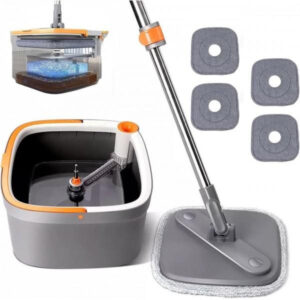 Швабра з безконтактним віджимом та квадратним відром 5,8 л, Сіра / Швабра з самовіджимом для миття підлог з відромШвабра с бесконтактным отжимом и квадратным ведром 5,8 л, Серая / Швабра с самоотжимом для мытья полов