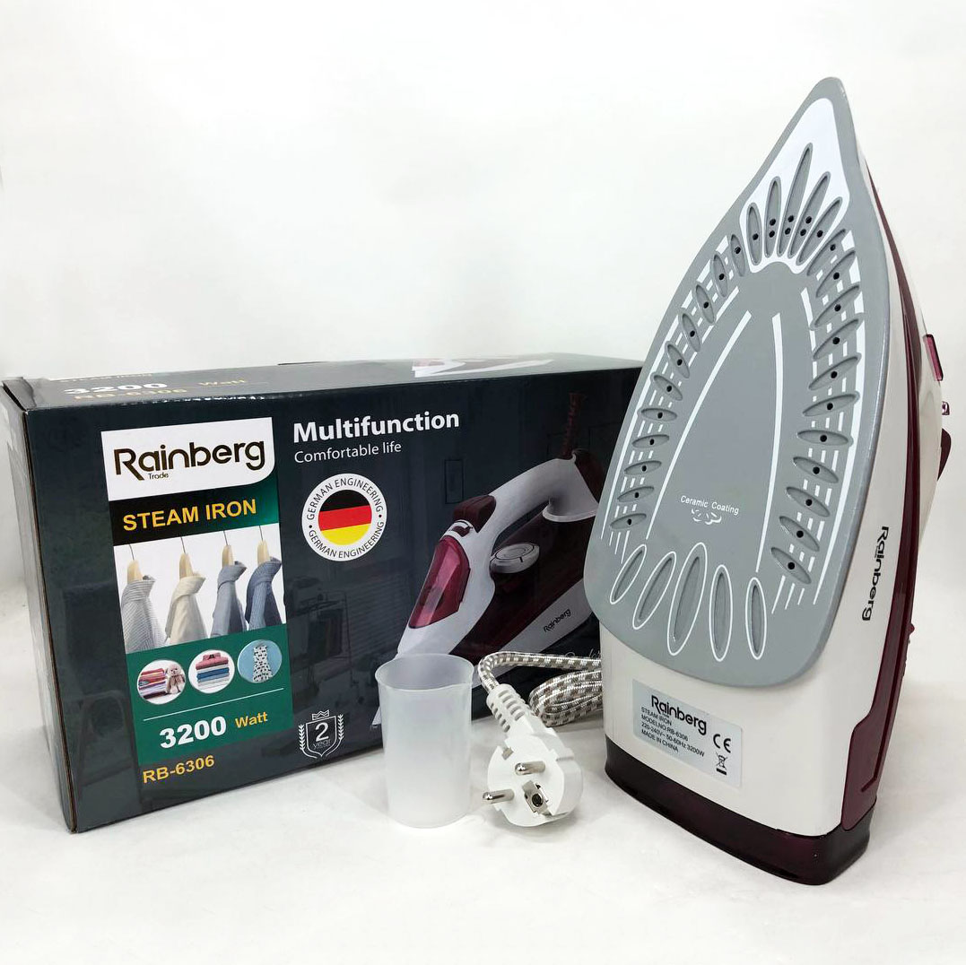 Праска Rainberg RB-6310 3200W, парова праска, керамічна підошва, потужна праска, праска прасувальнаУтюг Rainberg RB-6310 3200W, паровой утюг, керамическая подошва, мощный утюг, утюг гладильный