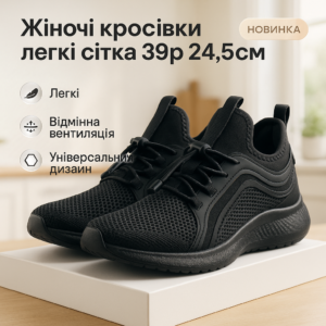 Кросівки жіночі літні сітка чорні 39р 24.5смКроссовки женские летние сетка черные 39р 24.5см